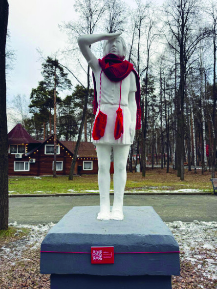 Промо-проект «Вязаный маршрут» был реализован в целях привлечения внимания потенциальной аудитории к балетному спектаклю «Щелкунчик», а также раскрытию смыслов и ценностей постановки. При реализации проекта был выбран формат творческой лаборатории, предусматривавший активное вовлечение подростковой труппы театра в создание иммерсивного аудиоспектакля о семейных новогодних традициях, воспоминаниях и факторах, объединяющих людей в праздничный период. Одновременно с аудиоспектаклем была организована выставка вязаных арт-объектов, органично интегрированных в ландшафт городского парка; эти объекты выступали метафорическим воплощением личных историй и эмоциональных впечатлений участников и были созданы родителями учащихся хореографической школы театра (рис. 4, 5). Уникальность проекта заключалась в том, что подростки, будучи одновременно артистами театра и представителями целевой возрастной аудитории, впервые получили возможность не только выразить себя пластически на сцене, но и вербализовать собственные мысли и переживания, тем самым создавая прямой диалог со зрителем. Проект позволил эмоционально вовлечь аудиторию, способствовал укреплению межпоколенческих связей, а также подготовил зрителя к восприятию смыслов балета «Щелкунчик».